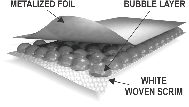 rFOIL Staple Guard Reflective Insulation is specifically designed to stay in place, and withstand windy conditions, when stapled to wood purlins, framing, or decking. rFOIL Staple Guard is comprised of a super-strong white woven scrim, bonded to a heavy duty bubble layer and a highly reflective radiant barrier film. The white layer is a durable, UV-Protected white woven scrim facing.